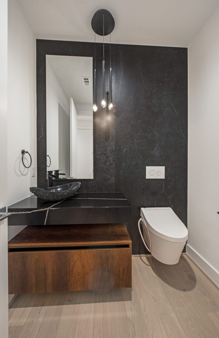 Powder Room with Dekton wall accent.